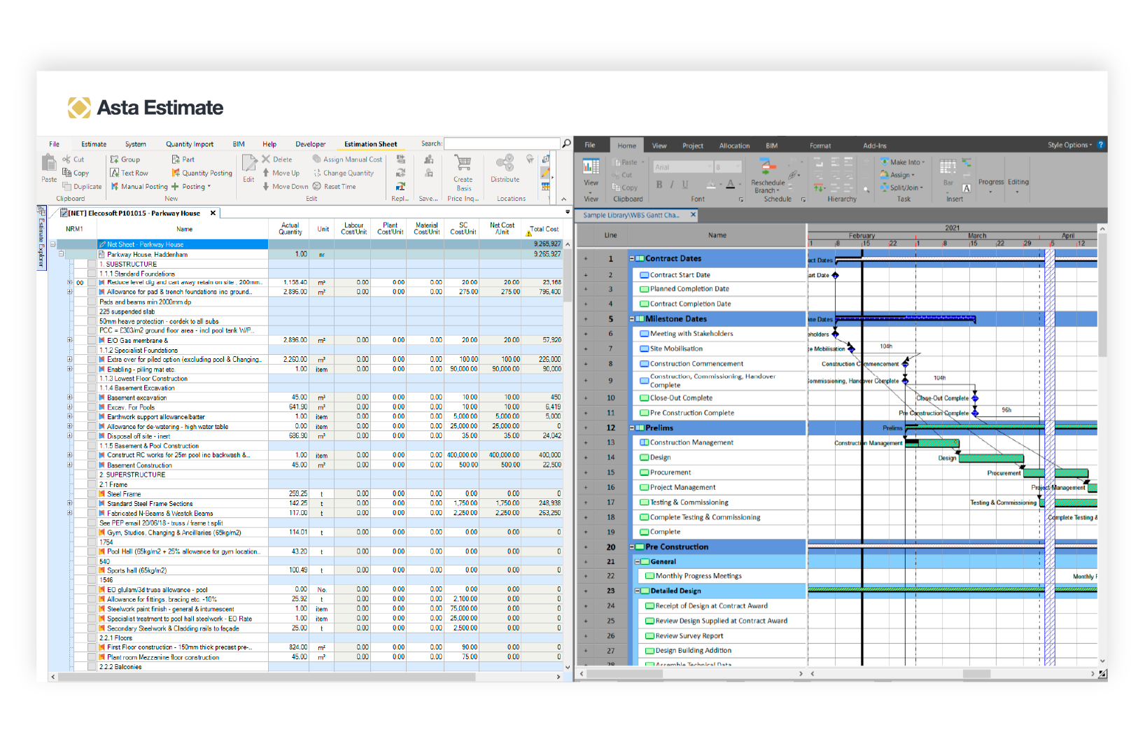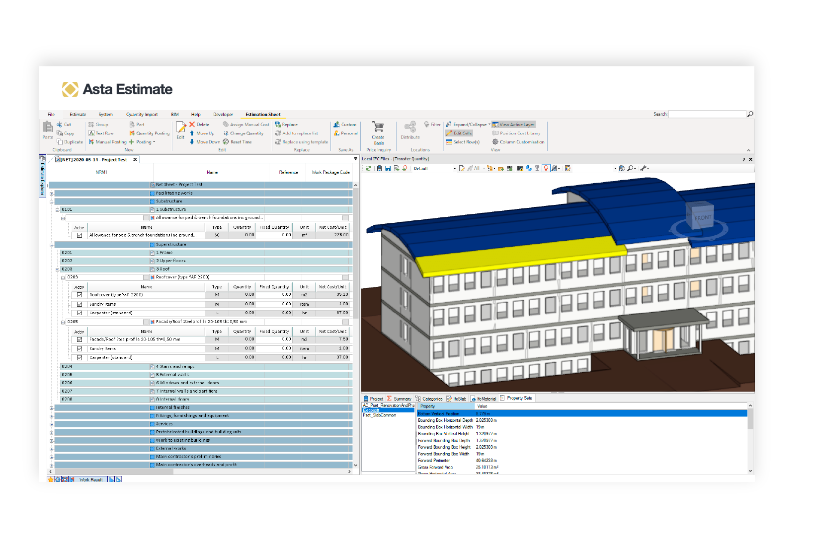 Asta Estimate enables fast and accurate quantity take offs from 2D drawings via our interface with Bluebeam, direct from BIM models or automated population through project properties.