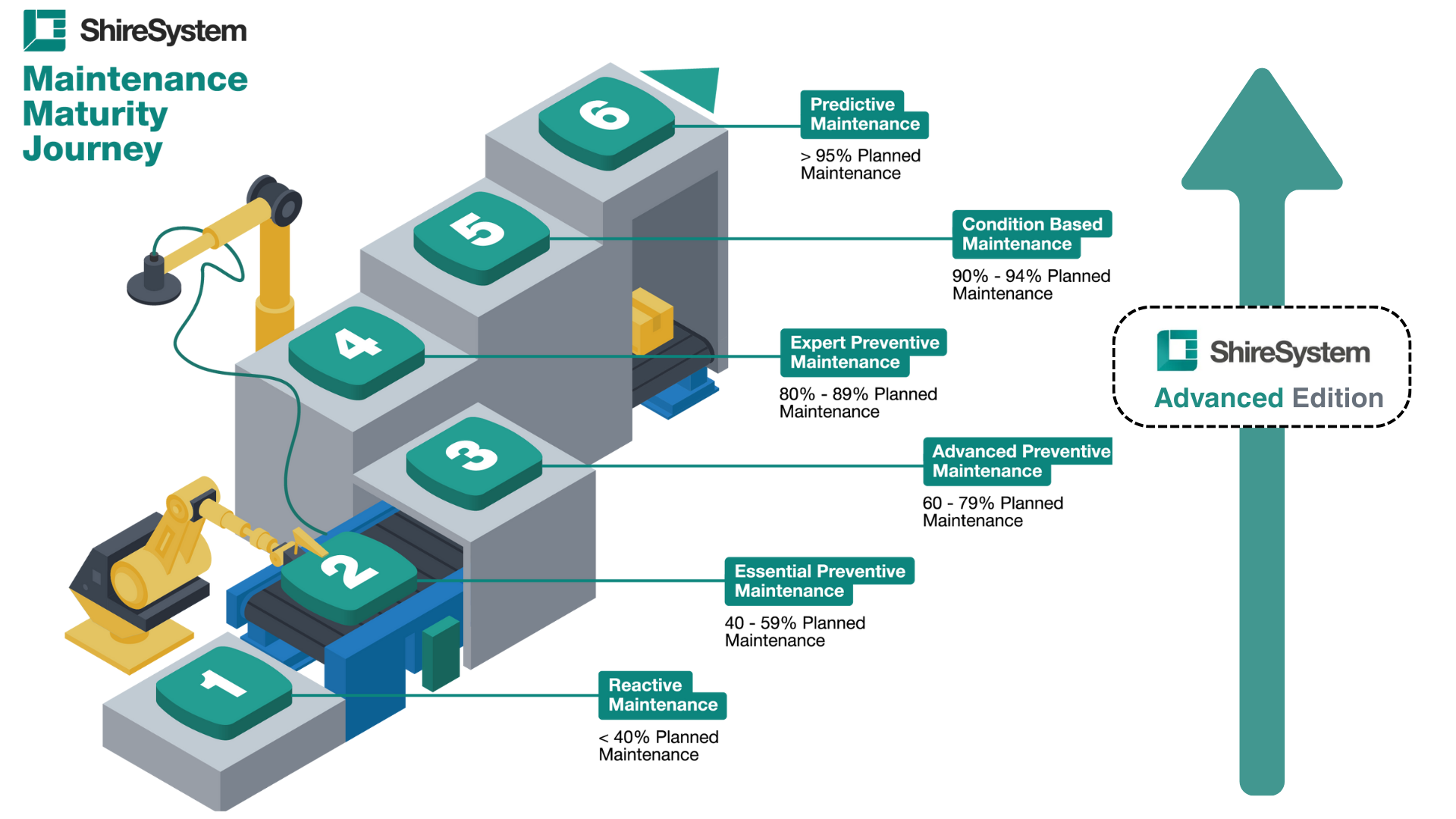 Building on the Professional plan, ShireSystem Advanced helps organisations shift towards 80% planned vs. 20% unplanned maintenance, improve asset availability to 85%, and significantly reduce emergency repair costs. It supports multi-site standardisation, and formal safety management to help you achieve economies of scale and meet the demands of heavily regulated environments.